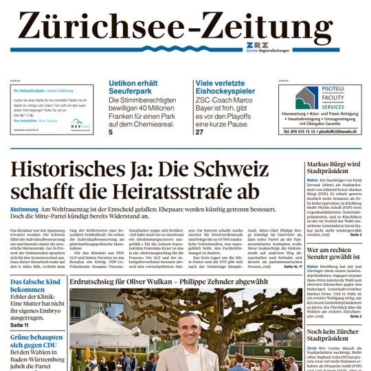 Die Zürichsee-Zeitung blickt auf eine über 160-jährige Tradition zurück. Die Tageszeitung erscheint in drei Ausgaben für die Bezirke Meilen, Horgen sowie die Region Obersee und berichtet über alles, was rund um den Zürichsee für Gesprächsstoff sorgt. Gemeinsam sind allen Ausgaben die relevanten News aus der Welt des Sports, der Politik im In- und Ausland, Wirtschaft und Kultur.